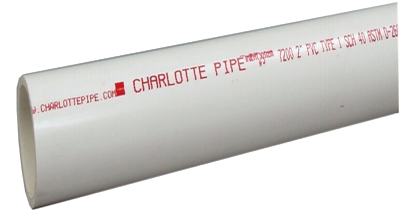 Charlotte Pipe, Plain End, Nominal Size: 1-1/2 in, 1.9 in Dia Outside, Wall Thickness: 0.145 in, 20 ft L, Operating Temperature: <140 deg F, Schedule Rating: SCH 40, PVC, White