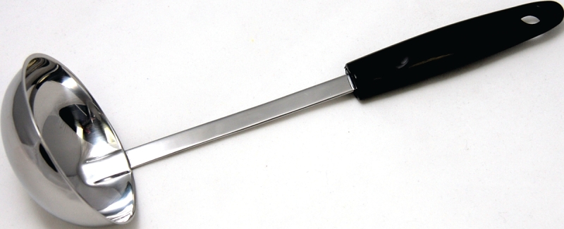 An essential in any kitchen, this stainless steel ladle offers a comfortable handle and durable construction.