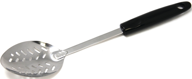 An essential in any kitchen, this stainless steel slotted spoon offers a comfortable handle and durable construction.