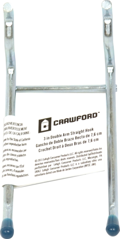 Crawford 14443-30 Peg Hook, 3 in Opening, Steel, Silver