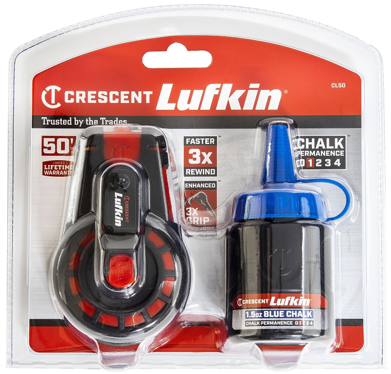 Crescent chalk reels are feature rich in order to make every pro’s work easier. The 50 in compact reel is no exception. A pushbutton release disengages the reel so the line can be pulled out faster. The reel also offers 60% more line than similar competitive reels and has a 3:1 gear ratio for quicker retraction, so users can get more done in less time.