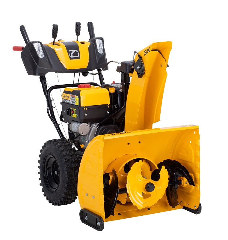 Cub Cadet Snow Blower, 4-Cycle OHV Engine, 357 cc Engine Displacement, 3 Stage, Chute Rotation: 200 deg, Throw Distance: 40 ft, Remote Single-Lever, Trigger Control, 5 qt Fuel Tank, Pushbutton Electric, Recoil Start, Clearing Surface Type: Gravel, X-Trac Wheel, 16 in Wheel, Clearing Width: 26 in, Intake Height: 21 in