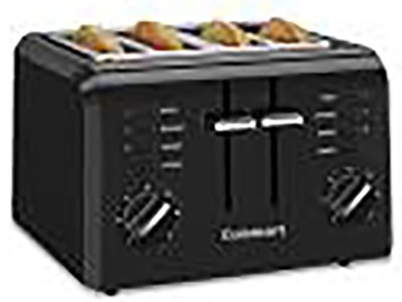 The classic toaster gets a modern update without sacrificing space thanks to the four slices compact plastic toaster by Cuisinart. The high-lift carriage works whether the toaster is placed sideways or facing forward, to fit anywhere in your kitchen. The generous slots accommodate up to two thick bagel halves and two slices of bread at once, toasted to your satisfaction with dual custom controls with seven different shade settings.