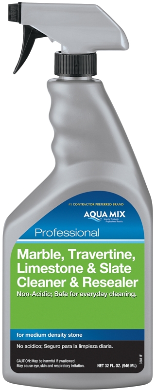 A ready-to-use, everyday cleaner formulated to effectively clean and maintain the natural beauty of your stone. Marble, travertine, limestone and slate are medium-density stones that are susceptible to acids and oily foods that cause etching and staining. It contains Aqua Mix® Sealer in its formula to reseal as it cleans, applying a thin coat of sealer every time you clean. Its formula is non-acidic so it will not harm your stone or grout.