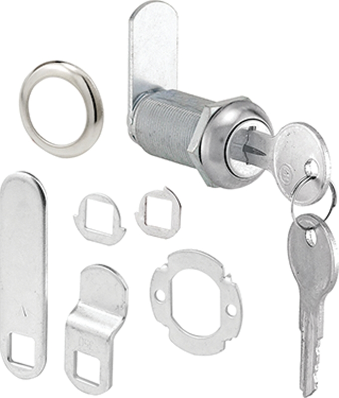 3/4 in Dia, 1-3/8 in lock fits up to a 1 in thick door panel. Complete with 3 cam assortment. 90 and 180 deg rotation washers included.