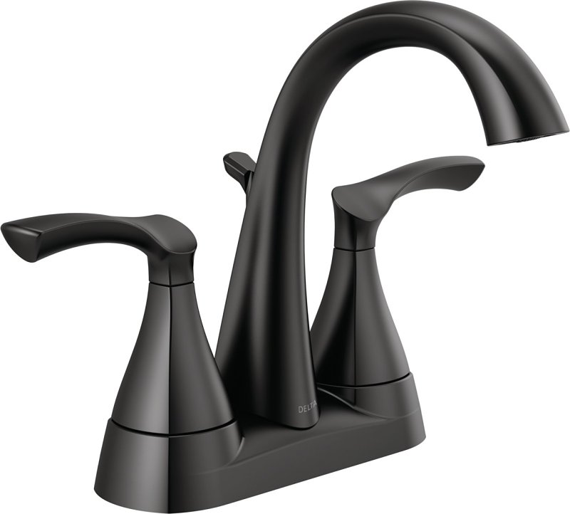 Delta SANDOVER Centerset Bathroom Faucet, 1/2 in Connection, IPS Connection, 1.2 gpm, 60 psi, Deck Plate Size: 6-5/16 in, Deck Thickness: 1.19 in, Spout Reach: 5-1/16 in, Spout Height: 5-11/16 in, Lever Handle, Number of Faucet Handles: 2, Plastic, Matte Black, Number of Faucet Holes: 3, Faucet Centers: 4 in