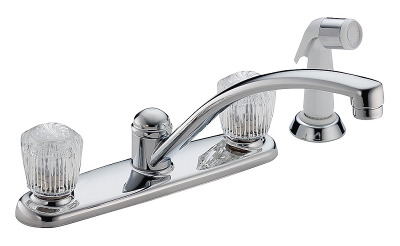 Delta Classic Series 2402LF Kitchen Faucet with Side Sprayer, Chrome Plated, 5-7/16 in H Spout, Brass