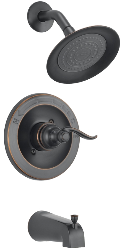 Delta Tub and Shower Set, Showerhead Flow Rate: 1.75 gpm, Showerhead Height: 2-3/4 in, Showerhead Width: 6 in, Spray Pattern: Full Body, Spray Settings: 1, Lever Handle, 1 Handles, Pressure Balanced Valve, Back-to-Back Installation, Brass, Oil Rubbed Bronze, Suitable for: MuiltiChoice Universal Rough Valve Body, Includes: Rough-In and Trim