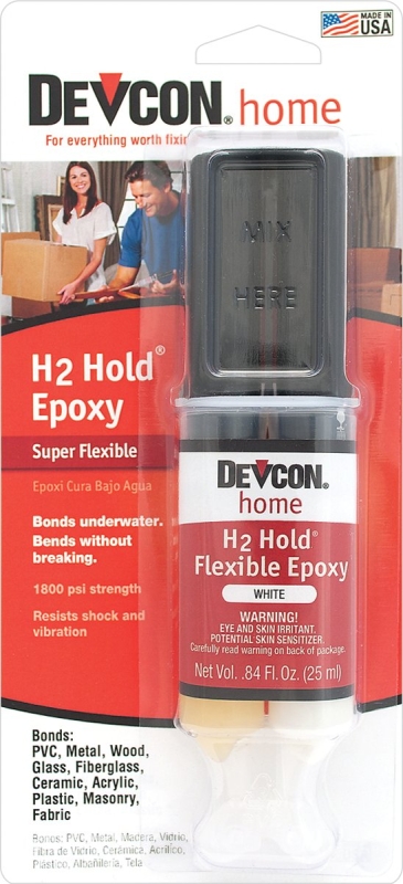 A two-part, super flexible, toughened, non-corrosive epoxy specially designed for wet or dry bond on almost anything. Waterproof, sticks and cures underwater. Resists shock and vibration. Use to make repairs on autos, boats, bikes, toys, pools and much more.