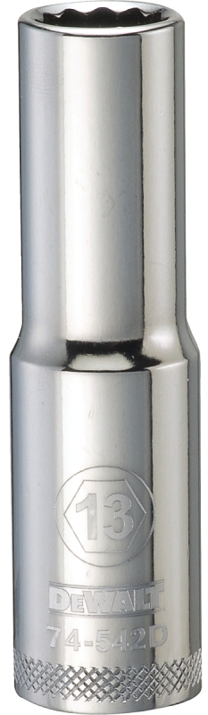 DEWALT DWMT74542OSP Drive Socket, 13 mm Socket, 1/2 in Drive, 12-Point, Vanadium Steel, Polished Chrome