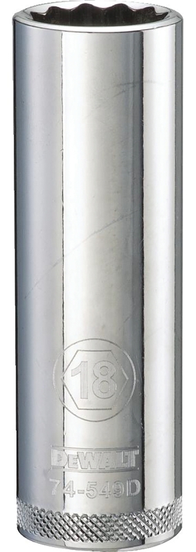 DEWALT DWMT74549OSP Drive Socket, 18 mm Socket, 1/2 in Drive, 12-Point, Vanadium Steel, Polished Chrome
