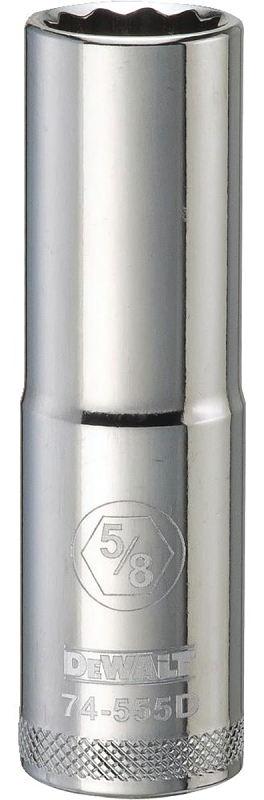 DEWALT DWMT74555OSP Drive Socket, 5/8 in Socket, 1/2 in Drive, 12-Point, Vanadium Steel, Polished Chrome