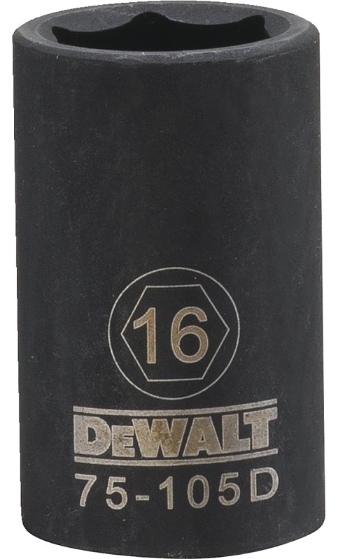DEWALT DWMT75105OSP Deep Impact Socket, 16 mm Socket, 1/2 in Drive, 6-Point, Steel, Black Oxide