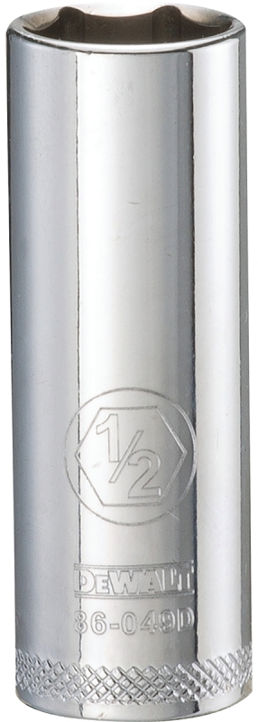 DEWALT DWMT86049OSP Drive Socket, 1/2 in Socket, 1/4 in Drive, 6-Point, Vanadium Steel, Polished Chrome