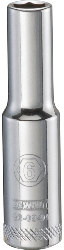 DEWALT DWMT86094OSP Drive Socket, 6 mm Socket, 1/4 in Drive, 6-Point, Steel, Polished Chrome Vanadium