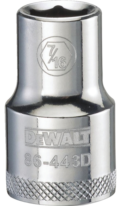 DEWALT DWMT86443OSP Drive Socket, 7/16 in Socket, 1/2 in Drive, 6-Point, Steel, Polished Chrome Vanadium