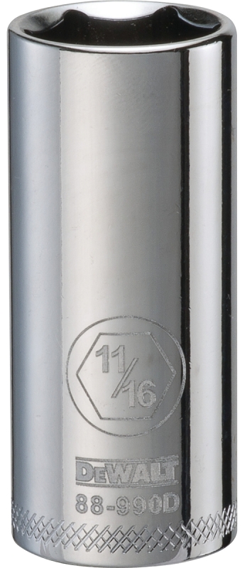 DEWALT DWMT88990OSP Drive Socket, 11/16 in Socket, 3/8 in Drive, 6-Point, Vanadium Steel, Polished Chrome