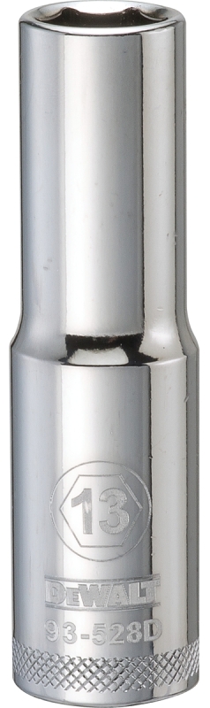 DEWALT DWMT93528OSP Drive Socket, 13 mm Socket, 1/2 in Drive, 6-Point, Vanadium Steel, Polished Chrome