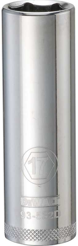 DEWALT DWMT93532OSP Drive Socket, 17 mm Socket, 1/2 in Drive, 6-Point, Vanadium Steel, Polished Chrome