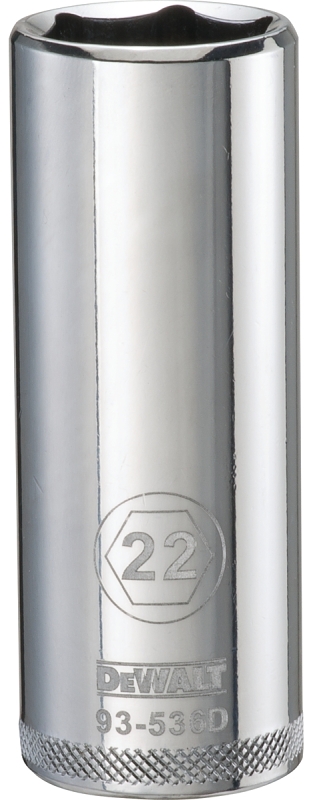 DEWALT DWMT93536OSP Drive Socket, 22 mm Socket, 1/2 in Drive, 6-Point, Vanadium Steel, Polished Chrome