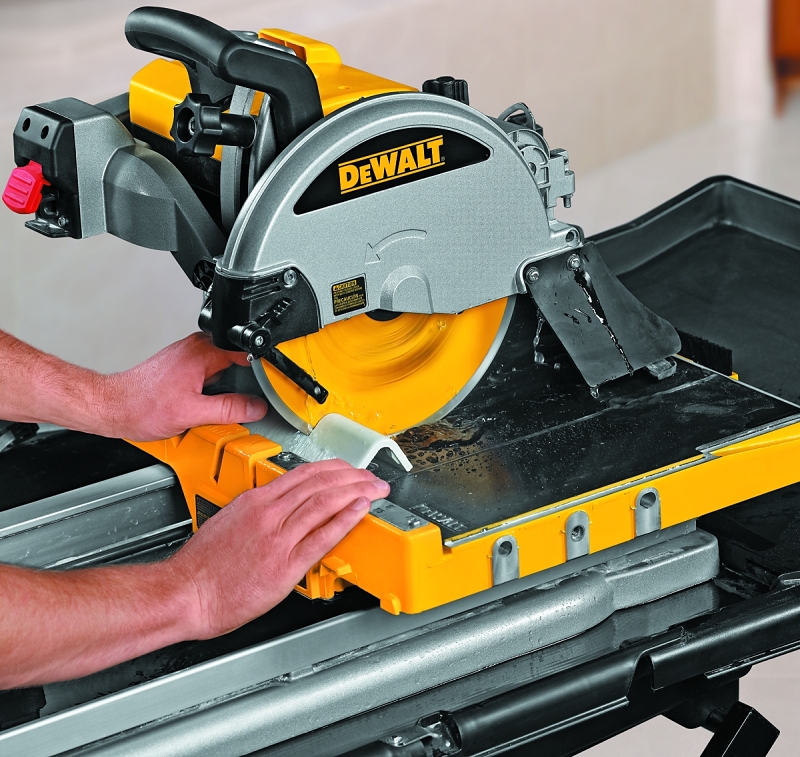This 10 in wet tile saw is the lightest in its class. One person can easily move it on and off the jobsite. It provides 25 in rip cut capacity and up to 28 in plunge cuts as well as 18 in by 18 in tile diagonal cuts. The incredibly stable, rubber-matted cutting cart will provide consistent accuracy to within 1/32 in over 18 in. It features excellent water containment, allowing for setup inside a finished home. Durable aluminum framing and stainless steel rails provide durability in the harsh jobsite environment.