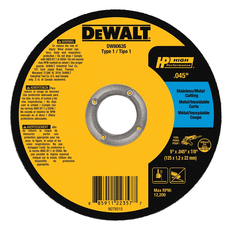 Crafted for fast cutting and long life, DeWalt Type 1 hp metal cutting wheels feature a thin 0.045 in wheel design for quick, burr-free cuts and a proprietary material mix for extended wheel life. Aluminum oxide grain delivers aggressive cutting action. Two full sheets of fiberglass offer durability and safety.