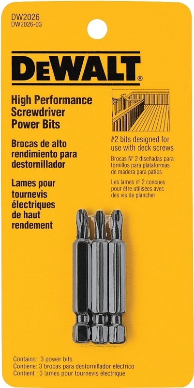 DEWALT DW2026 Z Power Bit, #2 Drive, Phillips Drive, 1/4 in Shank, Hex Shank, 2 in L, Steel