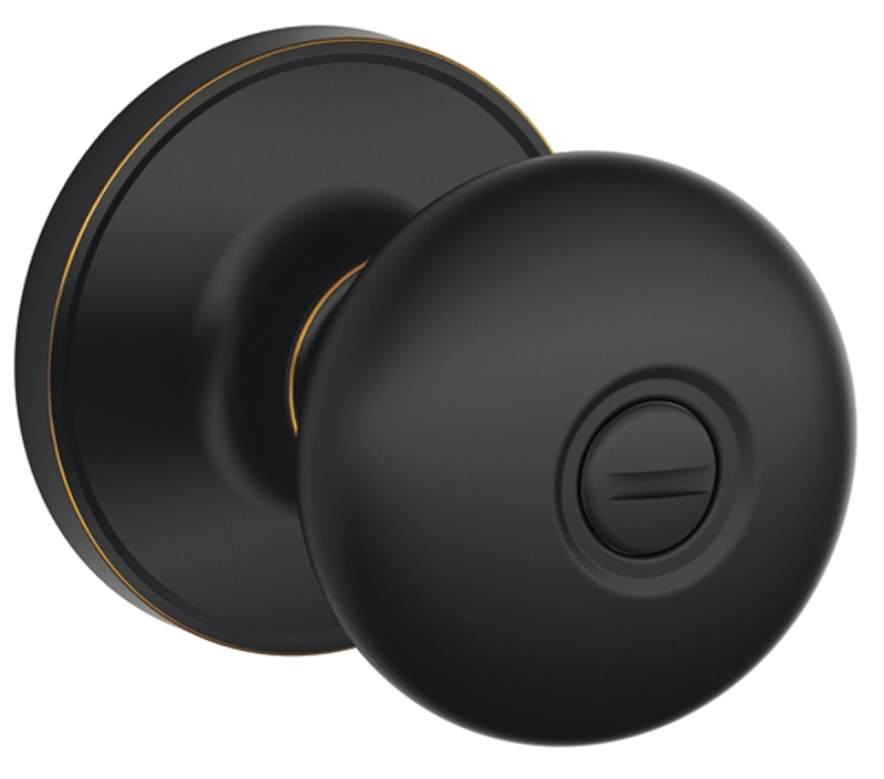 Stratus knob bed and bath lock in aged bronze.