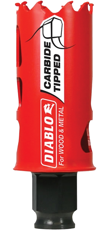 Diablo introduces the first carbide-tipped hole saws on the market to cut both wood and metal (wood, nail-embedded wood, plastic, aluminum, metal, cast iron, stainless steel and metal). Delivering 50X longer cutting life than bi-metal, these new carbide-tipped hole saws offer faster cutting performance and increased productivity.