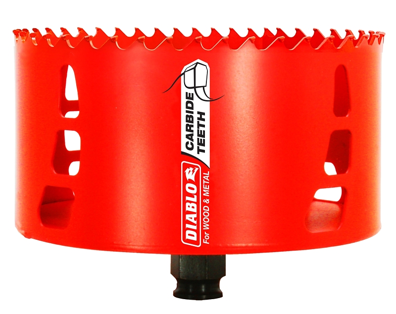 Diablo introduces the first carbide tipped hole saws on the market to cut both wood and metal (wood, nail-embedded wood, plastic, aluminum, metal, cast iron, stainless steel and metal). Delivering 50 times longer cutting life than bi-metal, these new carbide-tipped hole saws offer faster cutting performance and increased productivity.