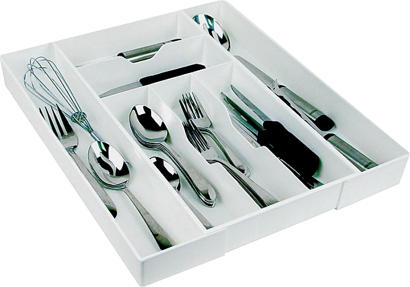 Use to organize and store cutlery. Width expands 9 to 16 in. Extra-long 18 in depth.