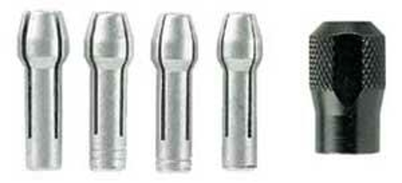 Improve the grip for bits in our rotary tool line with a genuine Dremel® collet set. With the 480, 481, 482, 483 collets, plus a quick-change collet nut, you can easily use a wide range of bits.