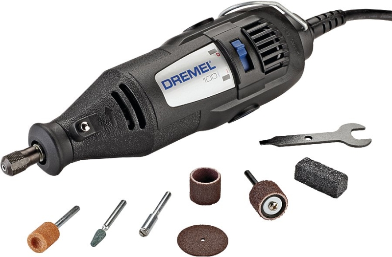 The Dremel® 100 Series single-speed rotary tool offers the ultimate in convenience. Designed for full-speed applications, like routing, cutting, drilling and sanding. The 100 Series tool has powerful performance for shaping, hollowing, grooving, slotting, inlaying and making tapered holes in soft metals, plastics and woods – especially on curved surfaces. It’s a simple rotary tool that gives you consistent operation levels of 35,000 rpm. An ideal rotary tool when one speed is all you need.