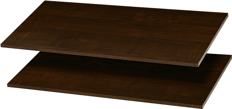 Adjustable shelves rest on included pins or can be secured in place. Contains two shelves, can be cut to desired size if needed. Scratch and moisture-resistant surface. Hardware is included.