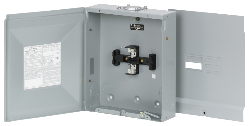 Eaton BR Load Center, 120/240 V, 125 A, Number of Phases: 1, Number of Spaces: 4, Number of Poles: 8, Number of Circuits: 8, Breaker/Load Center Type: Main Lug, Interrupt Rating: 10 kAIC, Cable Size: 14 AWG, Wiring Configuration: 3-Wire, Bus Bar Material: Aluminum, Enclosure Type: NEMA 3R, Metal, Gray, Includes: Cover