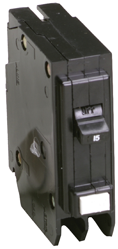 Eaton Circuit Breaker, GFCI, Plug-In, 120/240 VAC, 15 A, Number of Poles: 1, Interrupt Rating: 10 kA, Trip Type: Trip-To-Center, Wire Size: 14 to 8 AWG, Plug Mounting