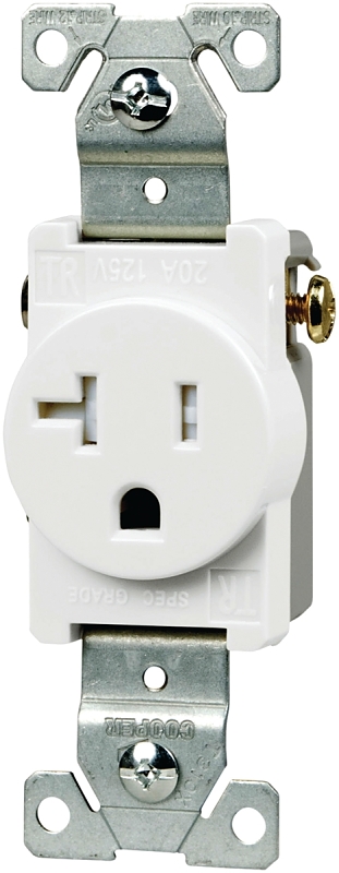 Eaton Wiring Devices TR1877W-BXSP Single Receptacle, Flush Mounting, 2 -Pole, 125 V, 20 A, Side Wiring, White