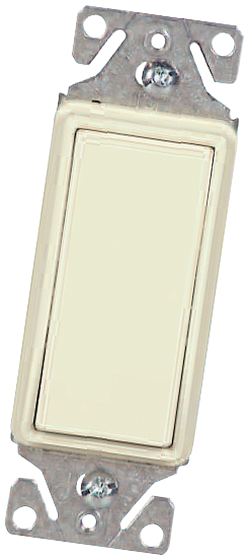 Switch only operates when finger pressure is applied. Thermoplastic rocker, top and back body are virtually unbreakable. Industrial design cam action mechanism for quiet operation. Longer, wider strap provides more contact area to wall board, virtually eliminates floating installations. Built-in wire stripper for number 12 and number 14 wire.