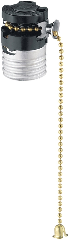 Interior pull chain for medium base lamp holders. Molded of heat and impact-resistant phenolic or urea. Interiors are UL component recognized. One circuit pull chain switch. 250 W, 250 V.