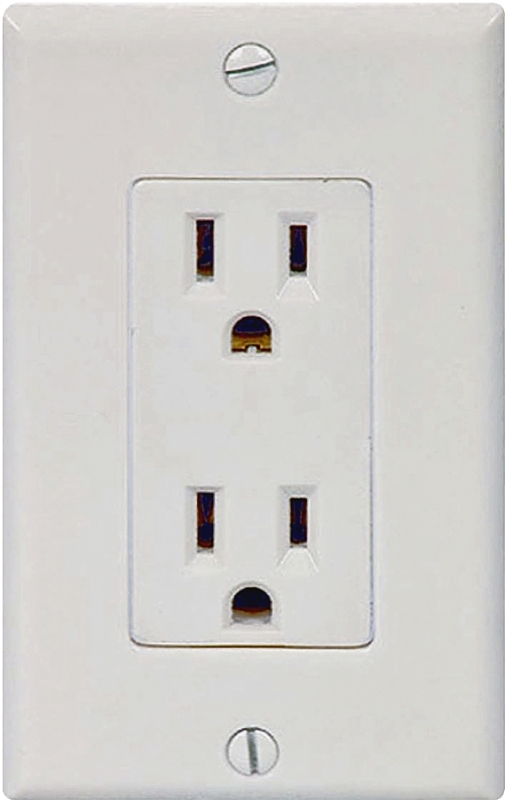 With No. 1107 wallplate. UL listed. 15 A, 125 V, grounded. Carded.