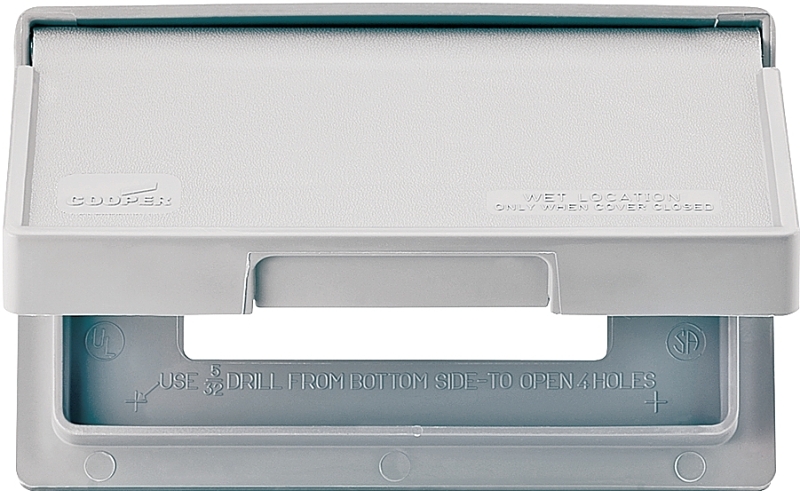 For GFCI/Decorator receptacle used in wet locations. Gaskets provided to seal cover edges as well as device openings. Stainless steel mounting screws included. Horizontal flush or surface mount. UL listed.
