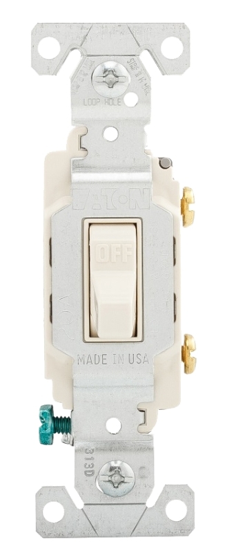 Eaton Wiring Devices CS120LA Toggle Switch, 20 A, 120, 277 VAC, PVC Housing Material, Light Almond