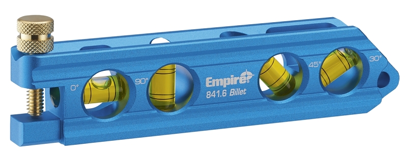 Empire 841.6 Billet Torpedo Level, 6 in L, 4-Vial, Magnetic, Aluminum, Blue