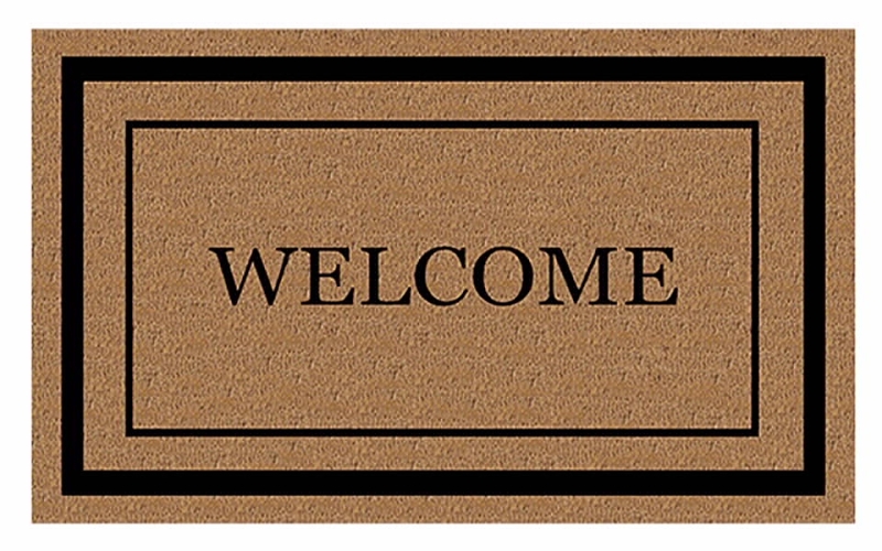 Fanmats Door Mat with Border, Black Flocked Pattern, Legend: Welcome, 30 in Length, 18 in Width, Coir Surface, Vinyl Backing, Outdoor Indoor/Outdoor, Resists: Fade, Mildew, Rot
