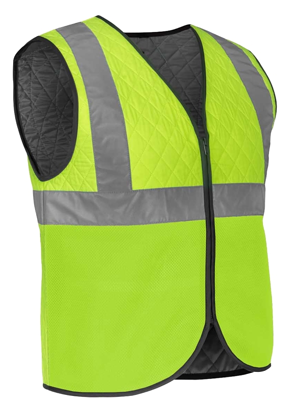 Fieldsheer® by Mobile Cooling®’s Hydrologic® vest uses a Super Absorbent Polymer (SAP) fabric with a more absorbent interlining that absorbs and holds cool water for extended cooling in even the hottest conditions. Designed for anyone that is in the heat for prolonged periods and needs rugged craftsmanship with high-vis features, this vest offers lasting comfort in even the hottest conditions. Soak the vest in water for 1 to 2 min, wring out excess water and wear it over your work shirt to cool your core through evaporative cooling. The evaporation process pulls heat away from your body providing an instantaneous cooling effect. It helps maintain a safe, comfortable internal temperature throughout the day in the hottest conditions, made from low profile, lightweight materials that store quickly when not in use. Its powerful cooling capabilities allow you to stay cool through the day no matter how hot it gets. Designed for workers in industrial professions who need high-visibility and outstanding performance to keep them cool, comfortable and safe no matter what the day throws at them. Whether it’s hot indoor environments or a construction site in the heat of summer Fieldsheer®’s Mobile Cooling® technology keeps you cool so you can get the job done. Utilizing quilted Hydrologic® absorption and evaporative cooling, this vest provides cool comfort all day long.