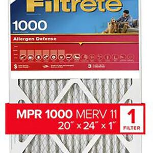Filtrete Air Filter, Non-Electrostatic, Pleated, MPR Rating: 1000, 11 MERV, Fiberglass Filter Media, 20 in Length, 20 in Width, 1 in Thickness