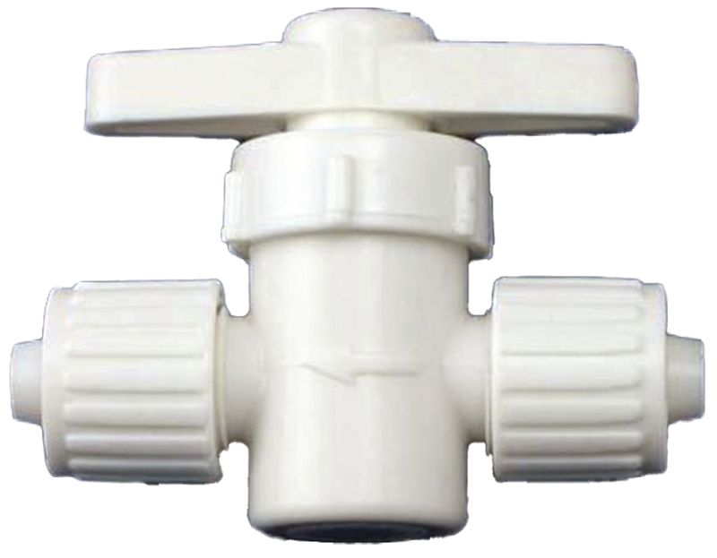 For hot or cold water In-line valve with PEX connections on both ends. Bar coded.