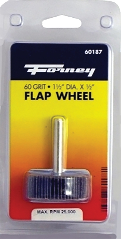 Forney 60187 Flap Wheel, Applicable Materials: Metal, Wood, 1-1/2 in Dia, 1/2 in Thick, 1/4 in Arbor