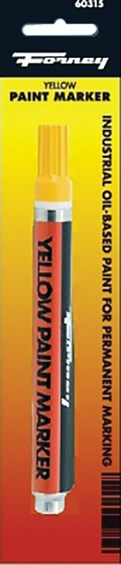 Yellow paint marker (carded). Oil-based paint markers for permanent marking on most surfaces. Intense, highly visible, quick drying colors are water and weather-resistant. Precision valve regulates paint flow.