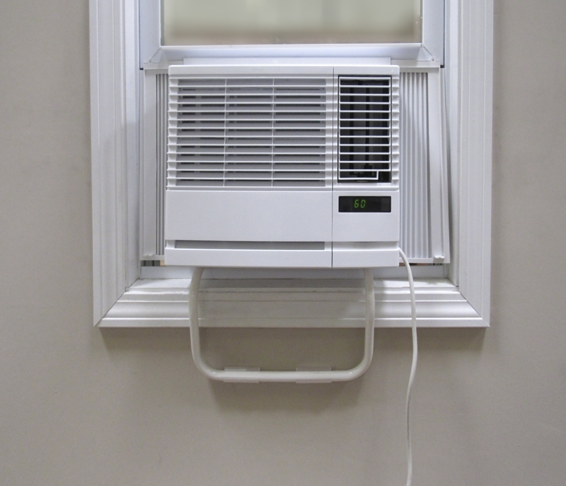 The Frost King universal air conditioner support expands to accommodate windows up to 36 in and has a powder-coated, rust-free finish. It supports window air conditioner units up to 100 lb. The precision bubble level ensures proper installation. The support leg braces against the exterior of the house and relieves stress on the window. It fits a wall thickness of up to 9 in.